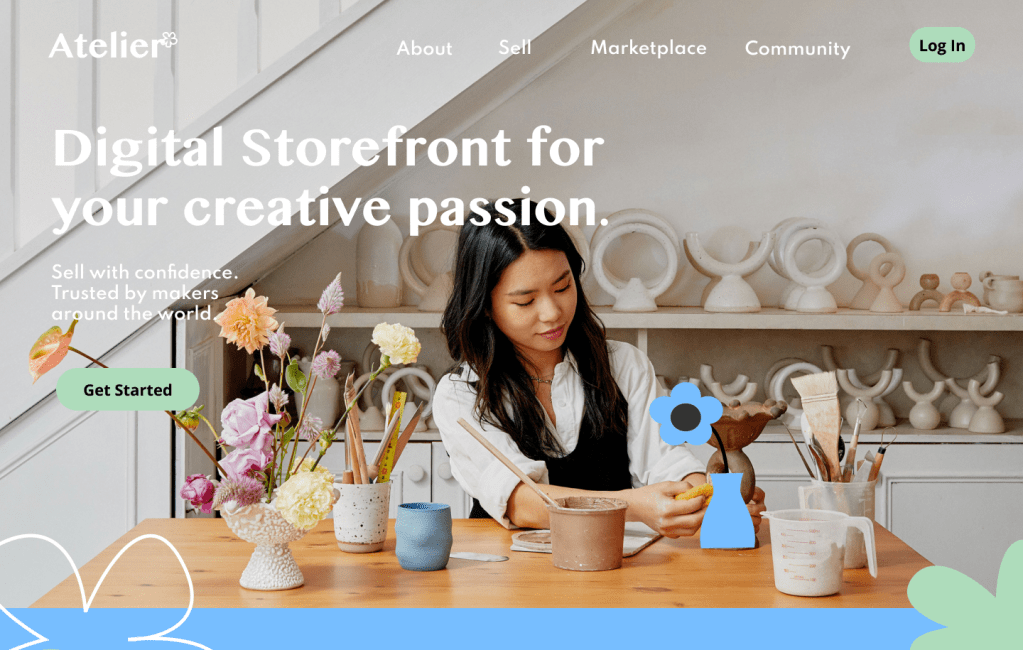 Hero Section – Clear message about Atelier’s purpose and value to users with a simple call-to-action (CTA) and easy to use navigation